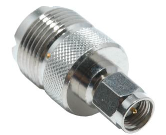 Коннектор-переходник SMA-M/UHF-F для подключения кабелей к радиоаппаратуре с разными типами разъемов.